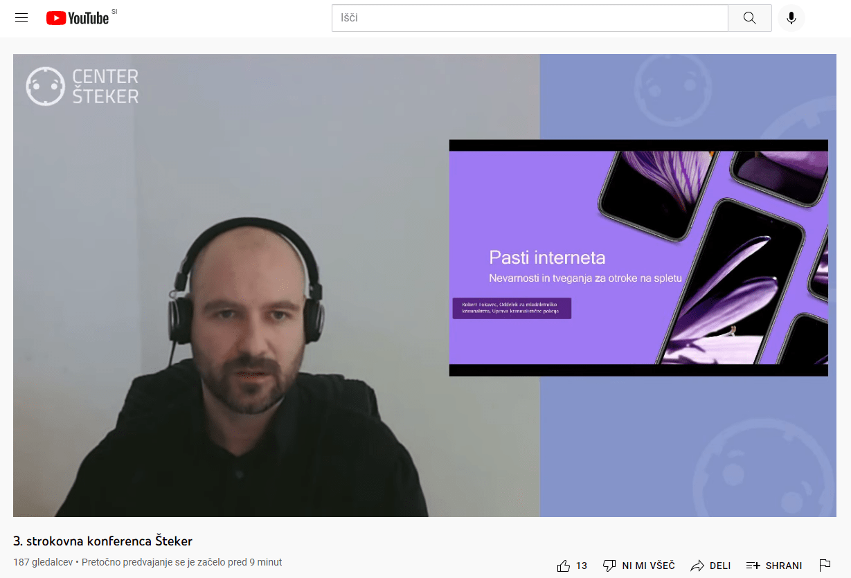 Robert Tekavec, višji kriminalistični inšpektor specialist in vodja oddelka za mladoletniško kriminaliteto v upravi kriminalistične policije, je spregovoril o pasteh spleta s poudarkom na spolnih zlorabah otrok ter njihovem preprečevanju in preiskovanju.